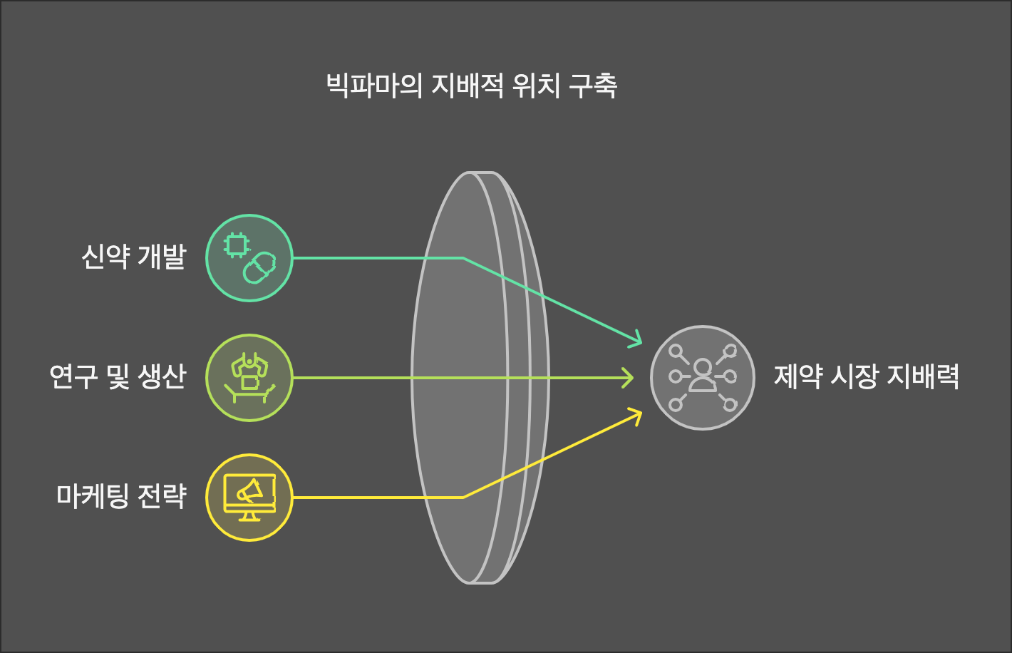 빅파마(Big Pharma)는 전 세계적으로 의약품 시장을 주도하는 대형 제약회사들을 지칭하는 용어입니다. 이들 기업은 막대한 규모의 매출과 글로벌 네트워크를 바탕으로 신약 개발, 연구 및 생산, 마케팅에 있어 지배적인 위치를 차지하고 있습니다.
