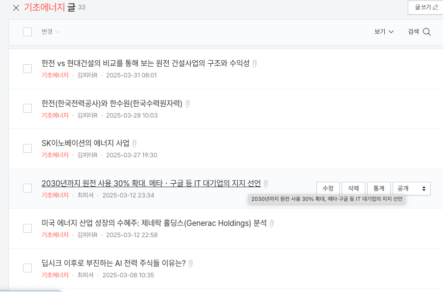 원자력&에너지 섹터 미리 발견하고, 분석하던 블로그